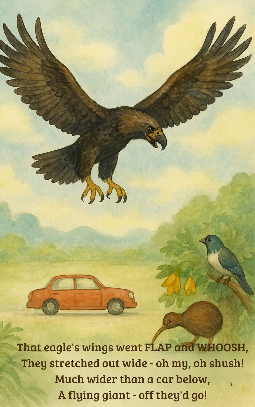 Inspired by the mighty Haast’s eagle, the story brings to life its immense size, strength, and role in the natural world, while gently explaining how the loss of the moa led to the eagle’s disappearance.